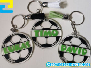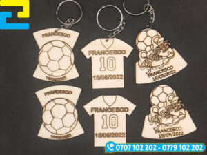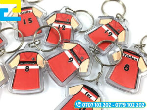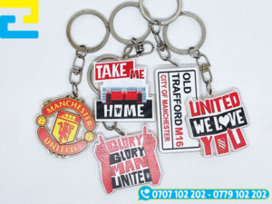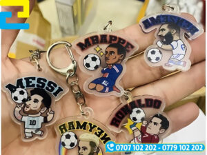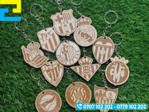 Móc khóa bóng đá là sản phẩm phụ kiện được in hình cầu thủ, logo câu lạc bộ hoặc các biểu tượng bóng đá quen thuộc, phù hợp với những người yêu thích môn thể thao vua. Sản phẩm được gia công từ chất liệu mica hoặc gỗ, kết hợp công nghệ in UV hoặc khắc laser hiện đại, mang lại hình ảnh sắc nét, độ bền cao và tính thẩm mỹ vượt trội.