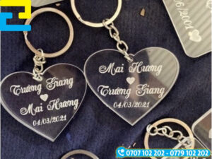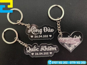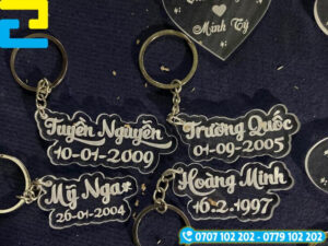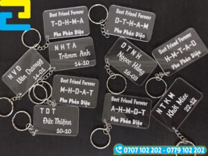 Móc khóa in tên là phụ kiện xinh xắn, mang đậm dấu ấn cá nhân, phù hợp để dành tặng bạn bè, người thân hoặc sử dụng trong các chương trình quà tặng, sự kiện. Móc khóa in tên được làm từ đa dạng chất liệu như mica, gỗ, inox đáp ứng nhu cầu sử dụng cá nhân cũng như in ấn số lượng lớn.