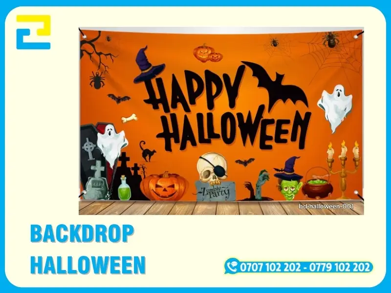 Backdrop thường được làm từ các chất liệu bền như bạt Hiflex, vừa dễ dàng lắp đặt vừa có khả năng chịu được thời tiết nếu dùng ngoài trời. Đặc biệt, các mẫu backdrop này có thể đặt thiết kế theo yêu cầu, mang đến sự linh hoạt cao, phù hợp với từng phong cách trang trí Halloween riêng biệt, giúp thu hút sự chú ý của mọi người trong mùa lễ hội.