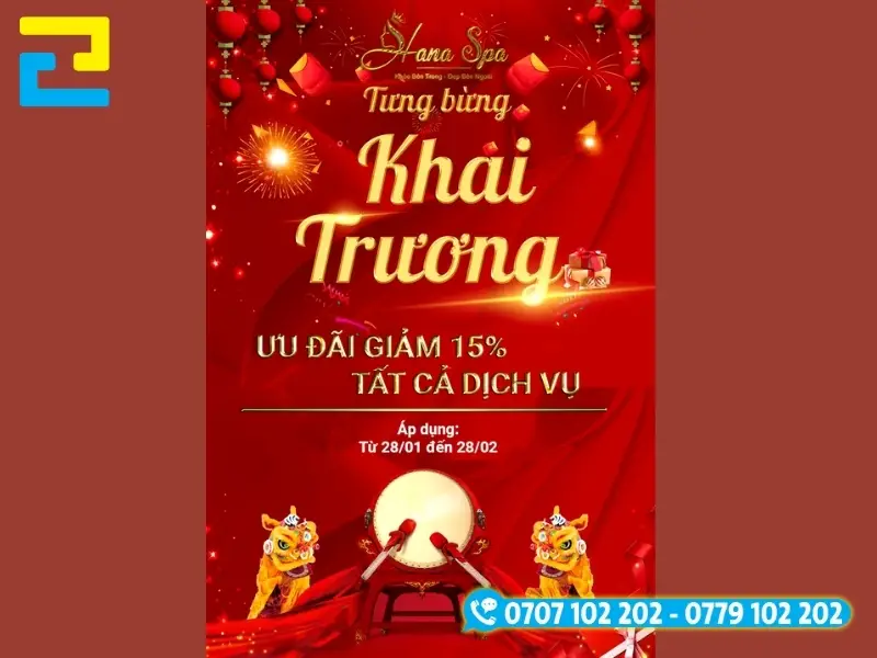 Cân nhắc để in background khai trương spa với kích thước phù hợp