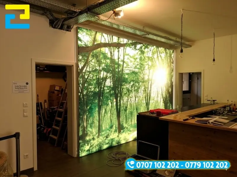 - In bạt 3P UV xuyên sáng — hoặc in PET dẻo cho brand cao cấp