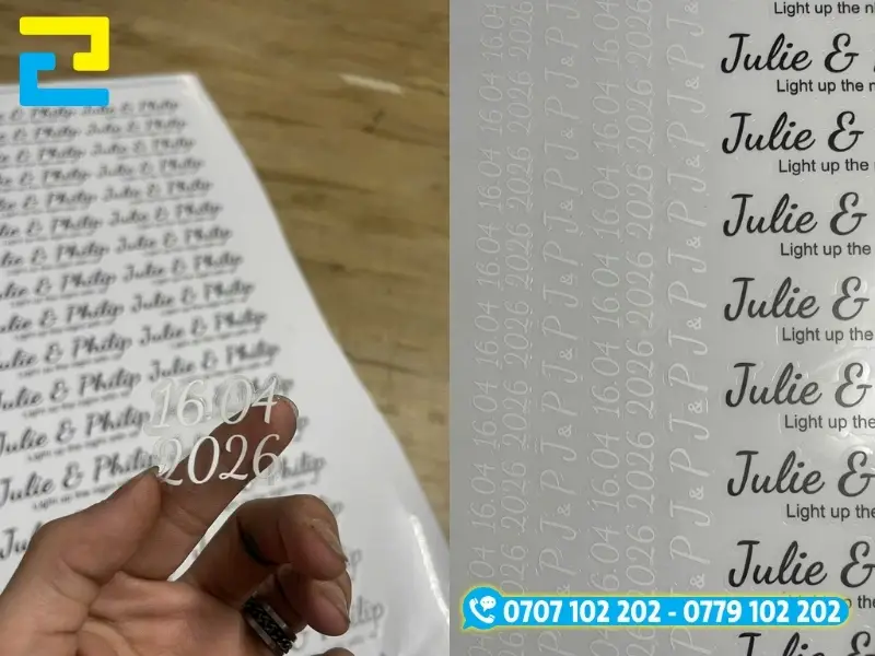 Decal trong là loại decal có nền trong suốt, cho phép nhìn xuyên qua phần vật liệu không in. Đây là lựa chọn phù hợp khi cần tạo cảm giác gọn, sạch và hạn chế che mất nền bề mặt phía sau.