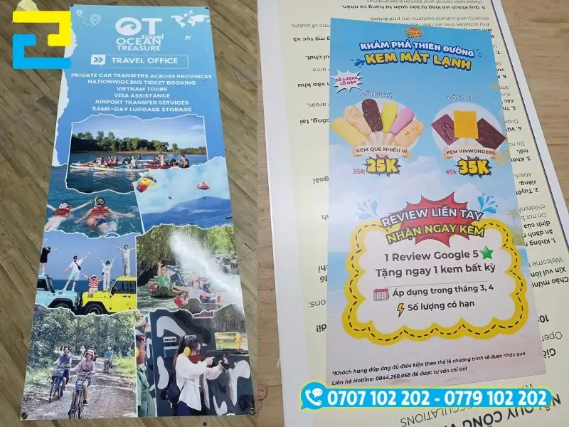 - Hỗ trợ tư vấn và thiết kế: Đội ngũ kỹ thuật hỗ trợ kiểm tra file in, chỉnh sửa bố cục và tư vấn chọn chất liệu phù hợp nhất với ngân sách cũng như môi trường sử dụng thực tế.
