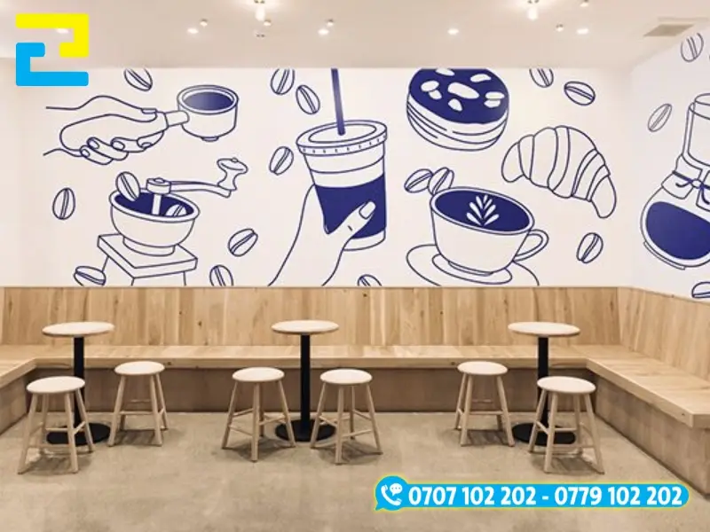 In decal quảng cáo kích thước lớn trang trí quán cafe