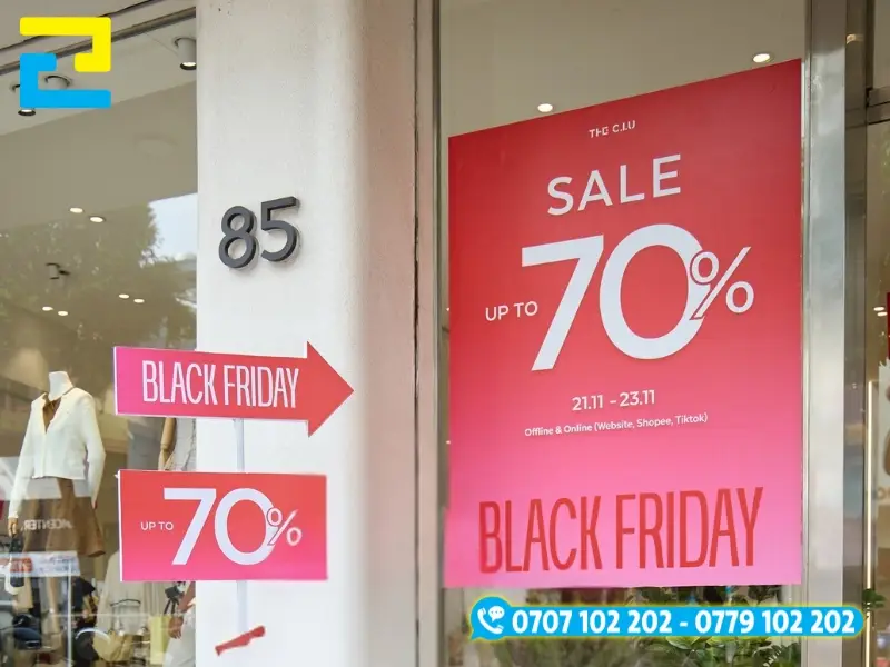 In decla quảng cáo khuyến mãi dán trước cửa hàng