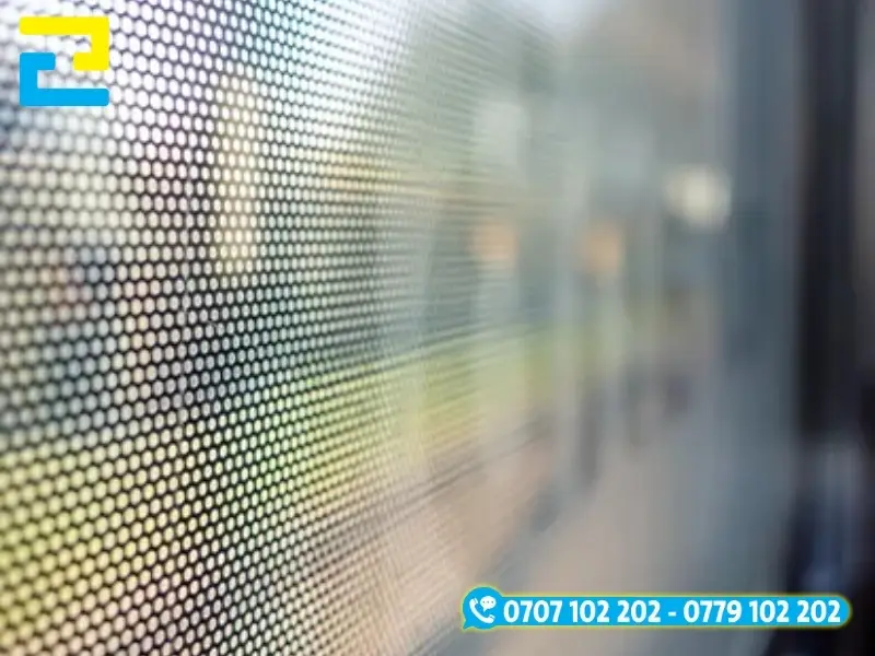 Decal lưới với các lỗ li ti, cho phép hiển thị hình ảnh quảng cáo ở mặt trước trong khi người bên trong vẫn có thể quan sát rõ ràng ra bên ngoài. Với ưu điểm nổi bật là khả năng chống nắng và giảm nhiệt hiệu quả mà không gây bí bách, loại decal này là lựa chọn lý tưởng để dán trên kính xe bus, xe ô tô hoặc các vách kính văn phòng lớn.