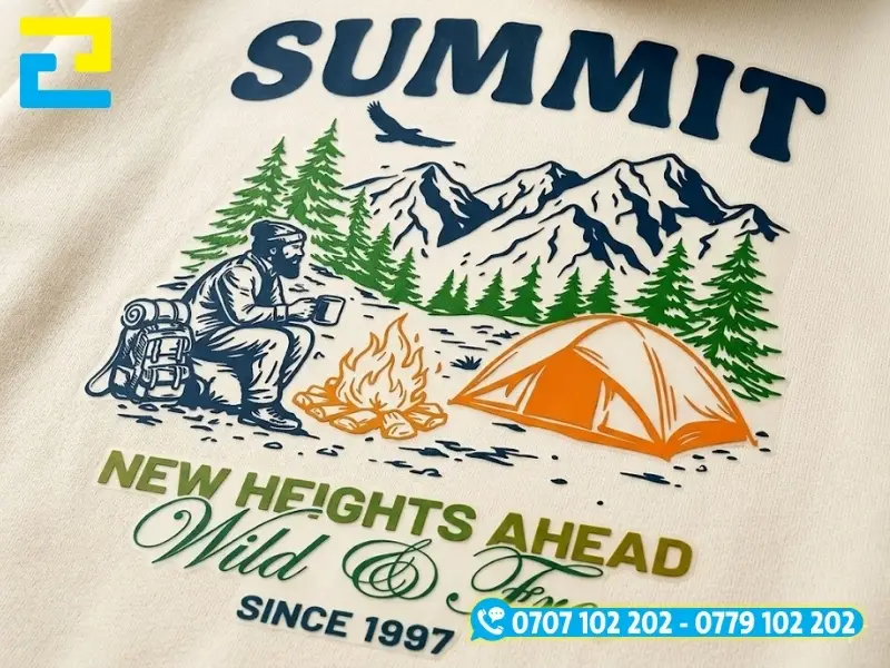 In lên áo màu đậm được không? Được. Với áo đen/xanh đậm, chúng tôi khuyên dùng mực chuyển nhiệt có lớp trắng nền hoặc công nghệ DTF thay thế.