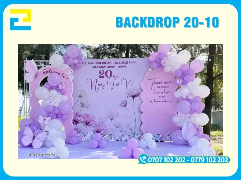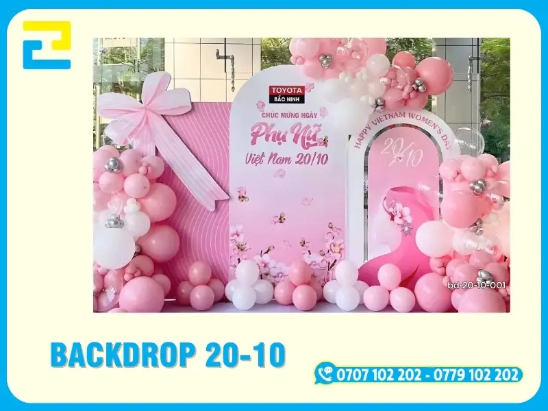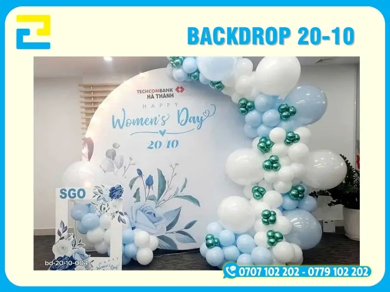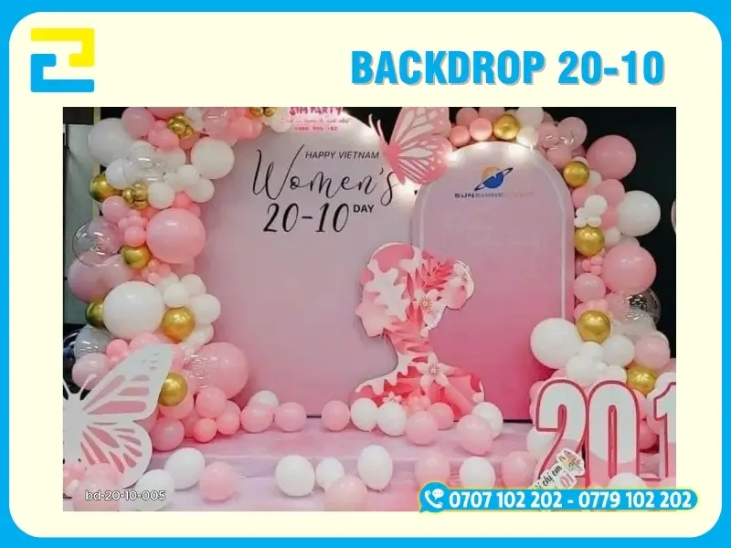 In background, phông nền , backdrop20-10 là một dịch vụ sử dụng công nghệ in tiên tiến trên các chất liệu như bạt hiflex, PP, canvas,… để làm phông nền cho sự kiện 20/10 – Ngày Liên Hiệp Phụ Nữ Việt Nam. Những nội dung được in phông nền thường được thiết kế sẵn, đúng với yêu cầu, chủ đề và tính chất của sự kiện 20/10 diễn ra.