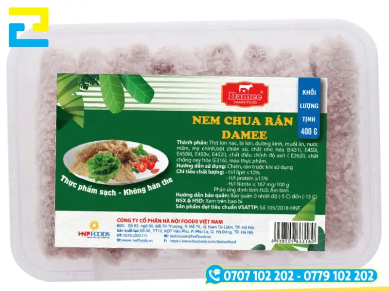 Tem nhãn cho sản phẩm nem chua rán đóng hộp đặc sản