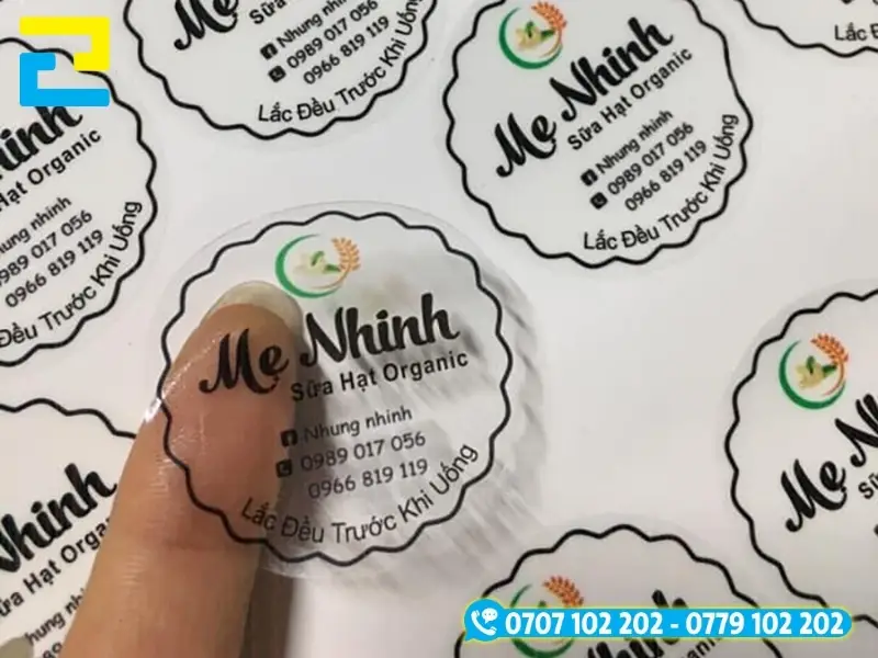 Tem in trên decal trong có thể dán lên mà không che mất sản phẩm