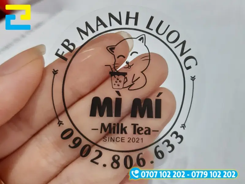 Decal trong suốt in nội dung dán lên ly trà sữa tiện lợi