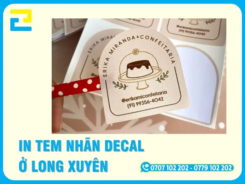 In tem nhãn decal tại Long Xuyên là dịch vụ sản xuất các ấn phẩm dán có lớp keo mặt sau, được thực hiện bởi các xưởng in chuyên nghiệp tại trung tâm tỉnh An Giang nhằm giúp các doanh nghiệp, hộ kinh doanh cá thể định vị thương hiệu trên thị trường.
