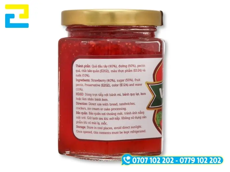 Thông tin bắt buộc trên tem nhãn mứt dâu tây
