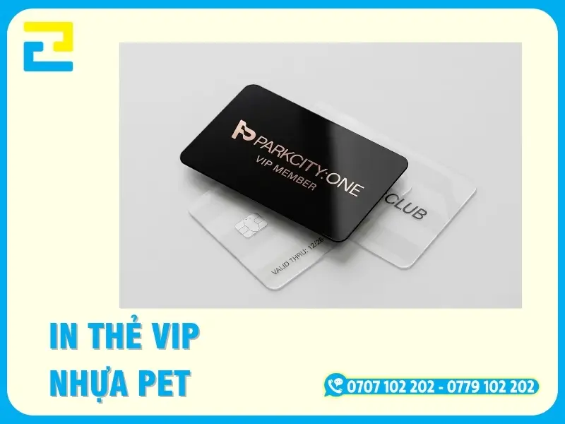Gọi 0707.102.202 hoặc 0779.102.202 để tư vấn miễn phí và báo giá in thẻ VIP PET theo thiết kế. Xưởng tại 1A Đào Trinh Nhất, Thủ Đức và 168/6 Vĩnh Phú 32, Bình Hòa, TPHCM.