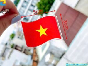 Móc khóa in hình lá cờ Việt Nam là lựa chọn hoàn hảo để thể hiện tình yêu nước, niềm tự hào dân tộc, đồng thời được sử dụng như một món quà tặng, quà lưu niệm ý nghĩa hoặc phụ kiện xinh xắn treo trên balo, túi xách, chìa khóa. Với chất liệu đa dạng như mica và gỗ bền đẹp, được thiết kế linh hoạt theo yêu cầu của khách hàng.
